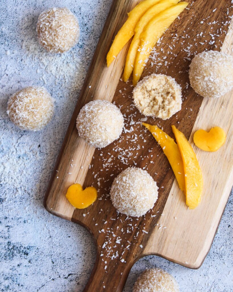 Vegane Kokos Energy Balls mit Mango (Raffaelo)