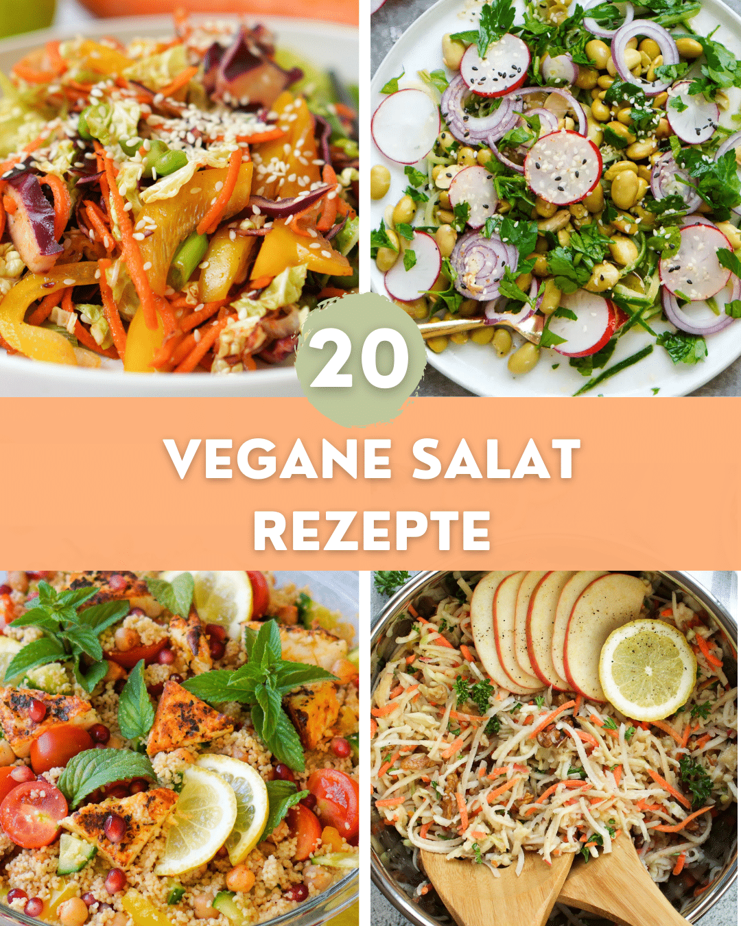 Hier findest du meine 20 liebsten veganen Salate mit jeder Menge frischen und vitaminreichen Zutaten, die deinen Körper mit wichtigen Nährstoffen versorgen. Alle Rezepte sind leicht zuzubereiten und erfordern oft keine komplizierten Kochtechniken. Von knackigem grünen Blattgemüse über verschiedene leckere Hülsenfrüchte bis hin zu köstlichem saisonalem Gemüse wie Tomaten, Paprika und Gurken bieten diese Salate eine Fülle an Vitaminen, Mineralien und Antioxidantien.