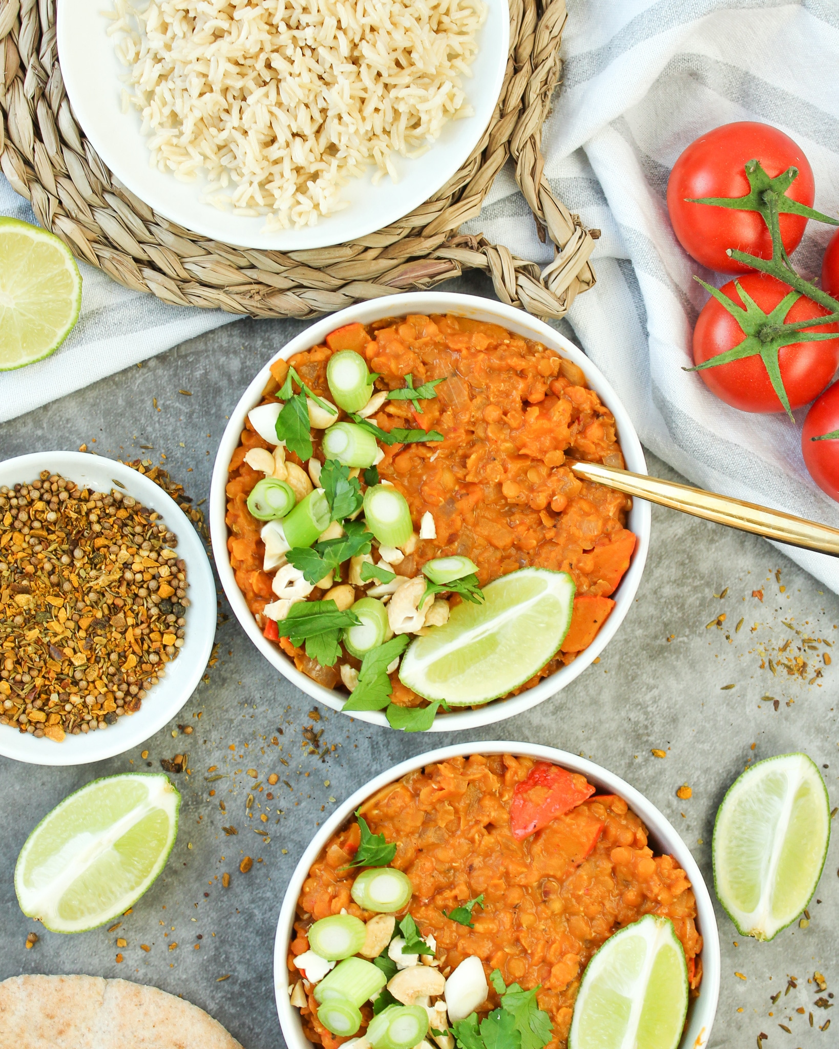Ein einfaches veganes Rezept – perfekt für kalte Tage. Zum Linsencurry kannst du Naan Brot oder Reis servieren.